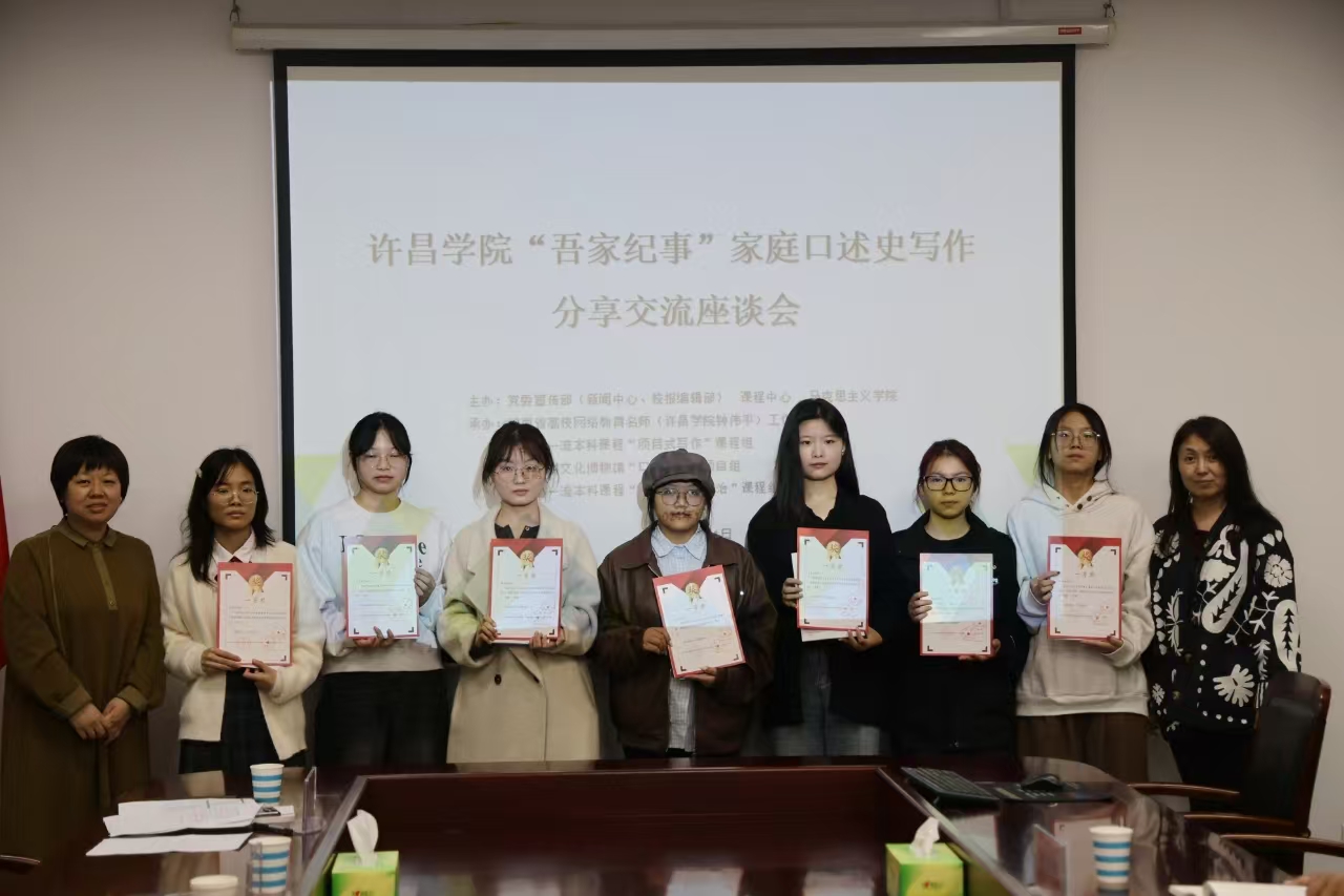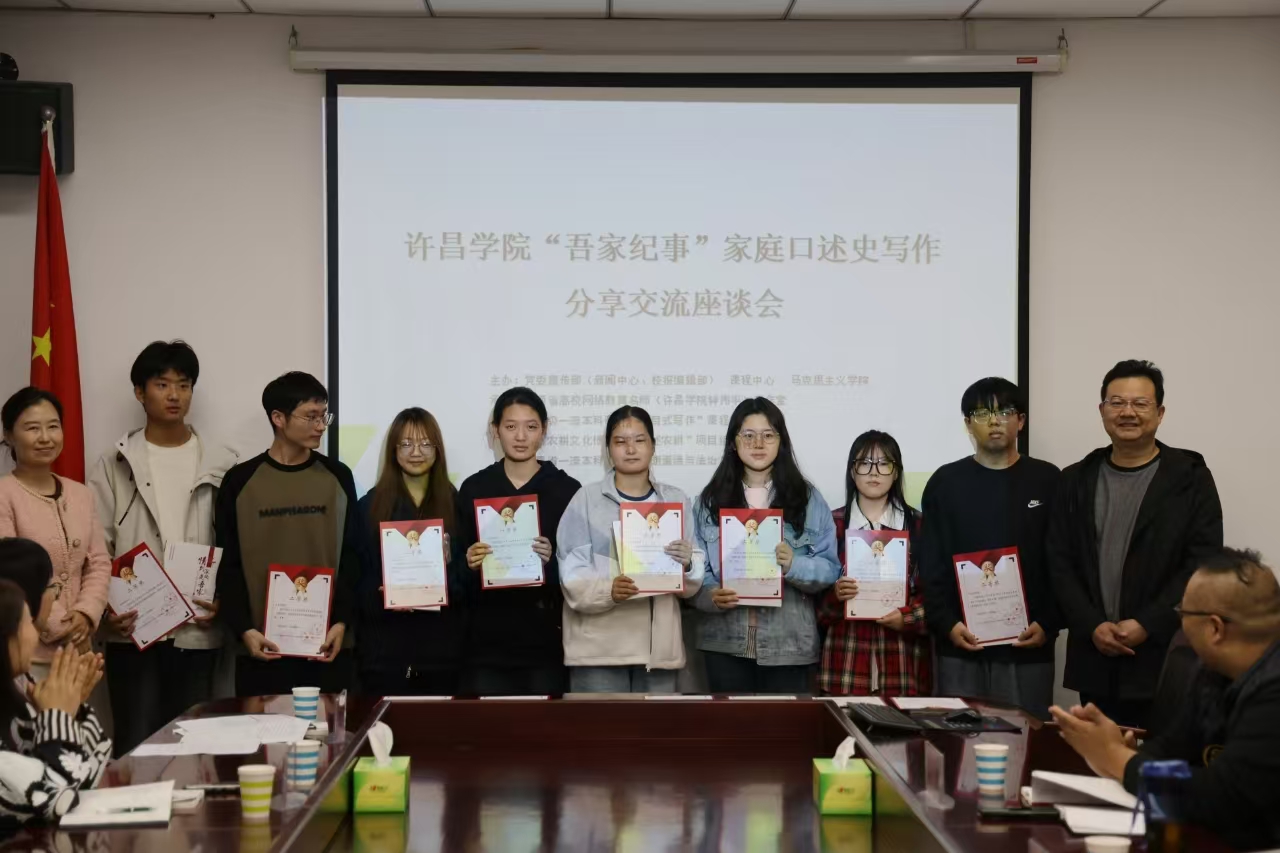 座谈会由新闻中心副主任王明华主持。会议宣读了许昌学院“吾家纪事”家庭口述史写作大赛获奖名单,并为获奖学生代表颁发了荣誉证书,赠送了《情到深处是吾家》获奖作品集。