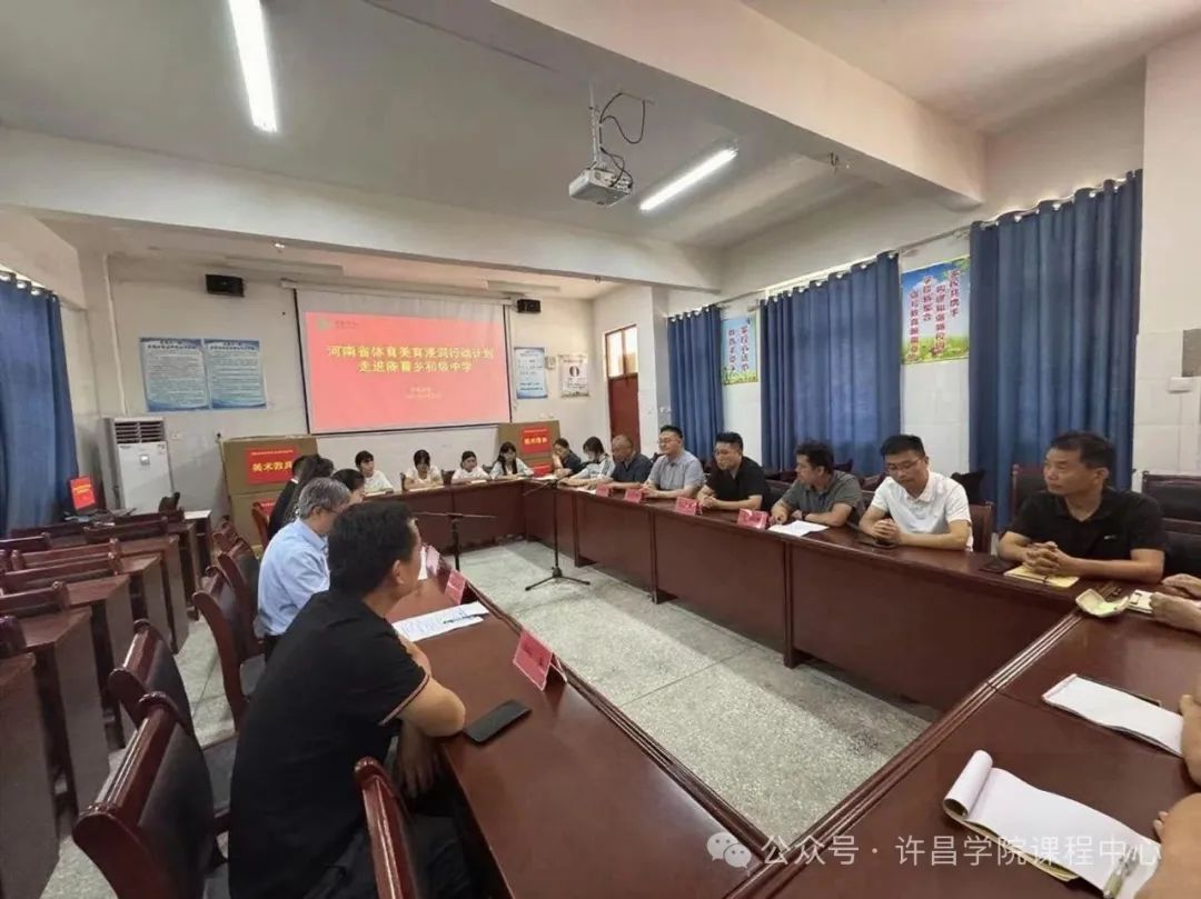 2025年6月25日,我校组织师生赴陈曹乡初级中学开展河南省体育美育浸润行动计划活动。此次活动,旨在通过高校与乡村学校的深度合作,推动美育资源向基层延伸,助力乡村教育振兴。上午9时,美育浸润活动在陈曹乡初级中学会议室正式开始。许昌学院美术与设计学院院长张少华、课程中心副主任李敏、陈曹乡中心学校校长郝现锋、陈曹乡初级中学校长张红兵等领导出席活动。